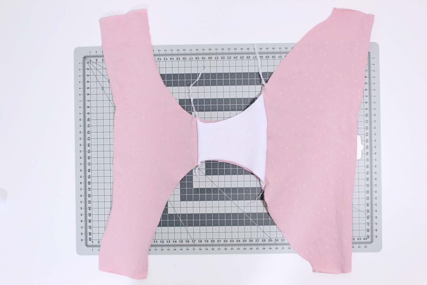 3. Nałóż na złożone panele przodu z materiału wierzchniego podszewkę.