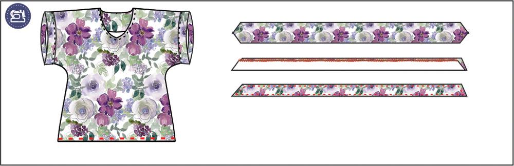6. Dół bluzki obrzuć na overlocku i podwiń na 1cm, wykonaj stebnówkę na 1mm od dołu.