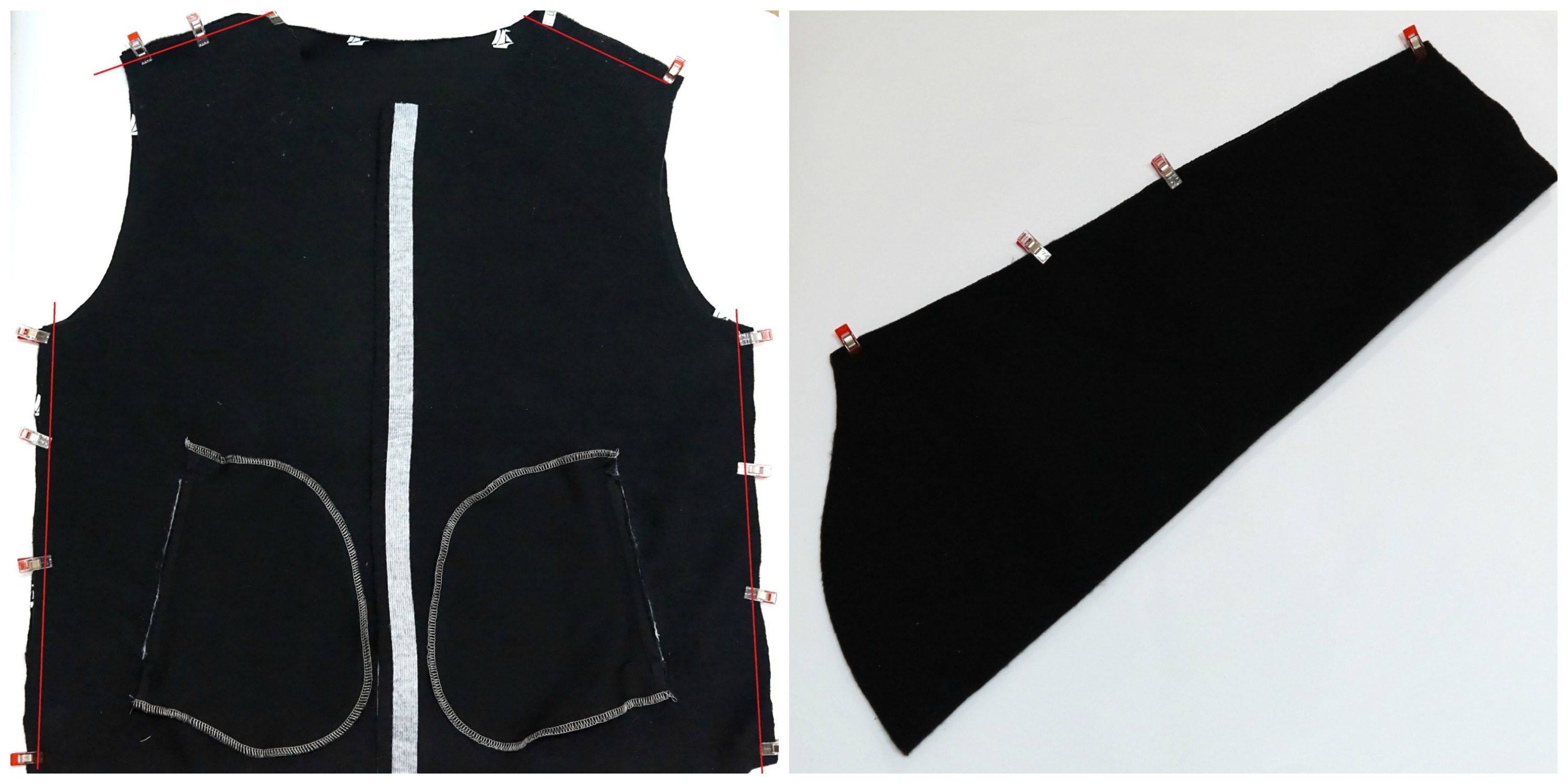 * Kieszeń była szyta przeze mnie drugi raz osobno na potrzeby tego wpisu , ponieważ bluza jest czarna i niewiele byłoby widać na zdjęciach. Użyłam specjalnie czerwonego pisaka oraz trzech różniących się kolorów, żeby wszystko dobrze zobrazować.