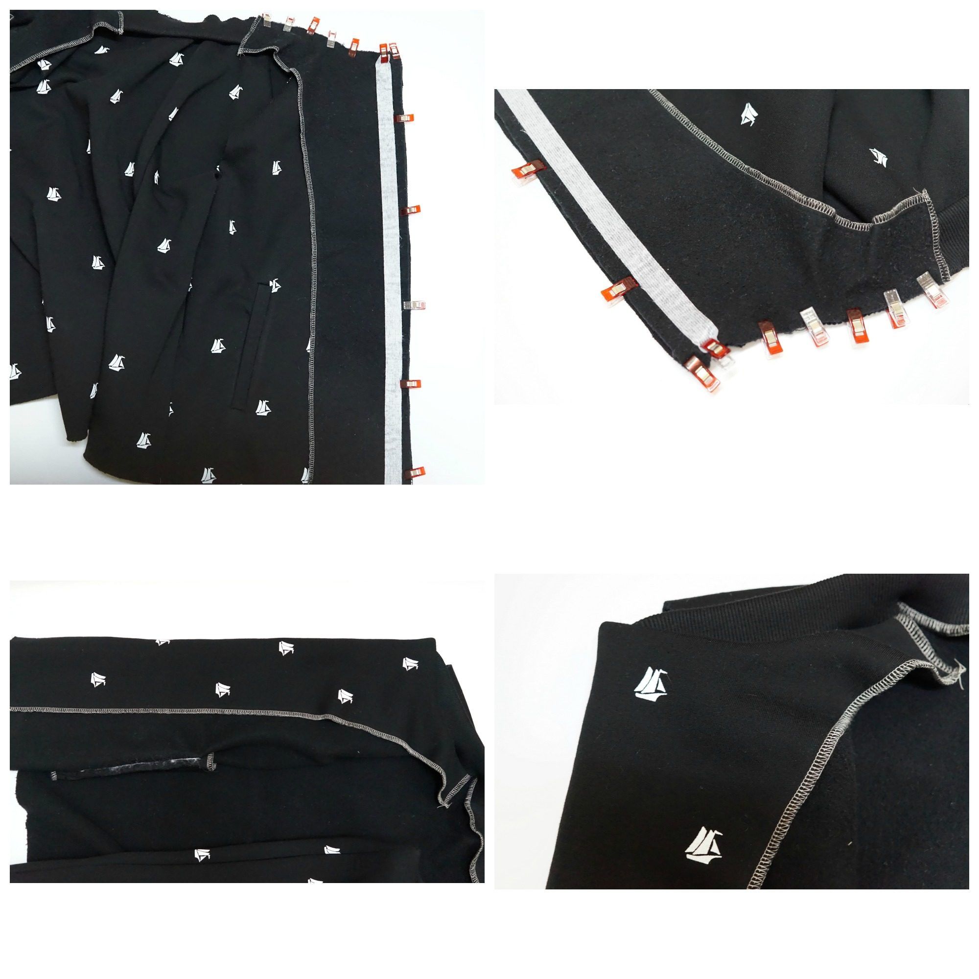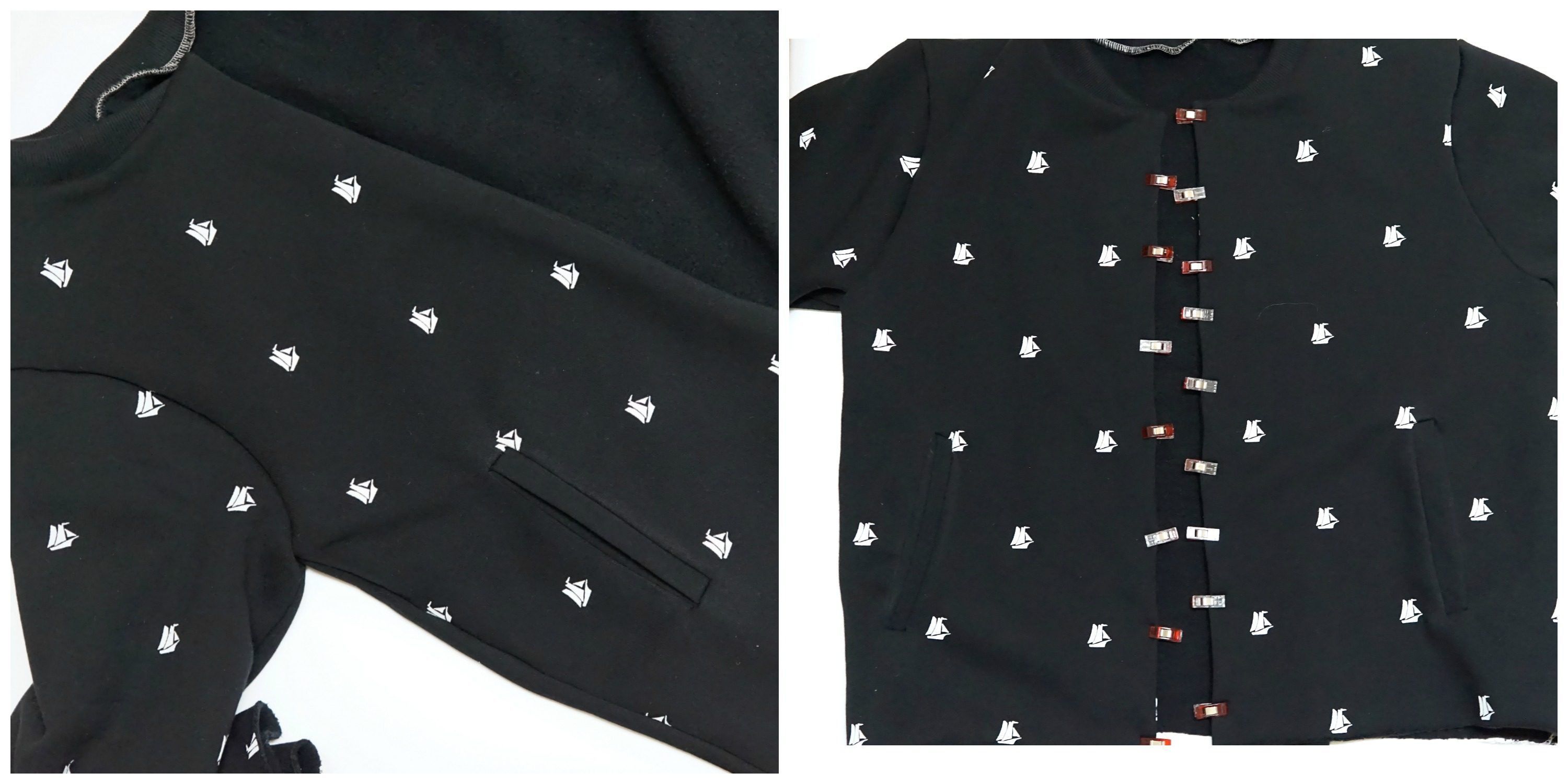 Wróćmy teraz do bluzy. Mamy już kieszenie więc zszywamy ze sobą elementy bomberki