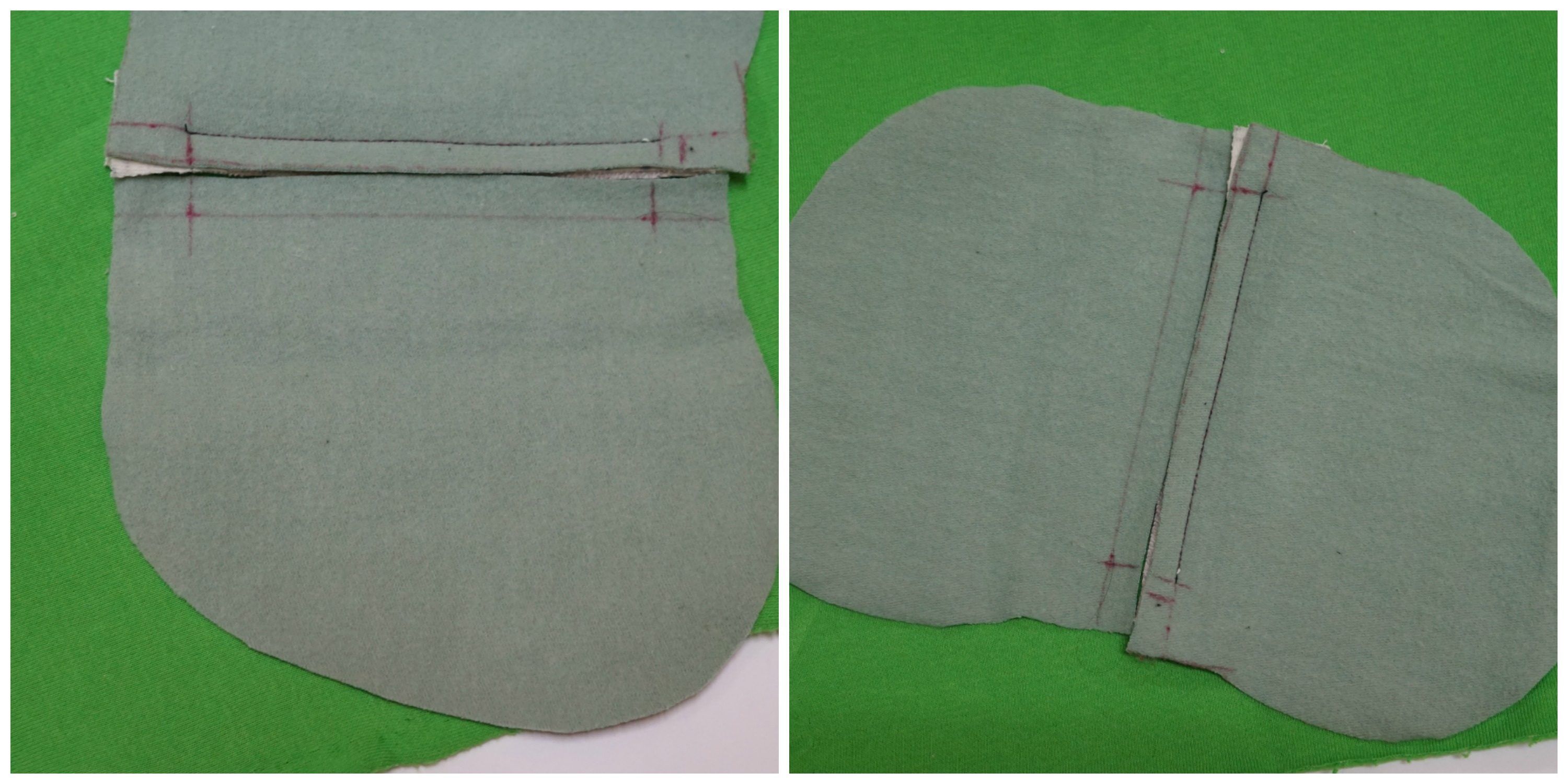 Na koniec zszywamy ze sobą worki kieszeniowe.