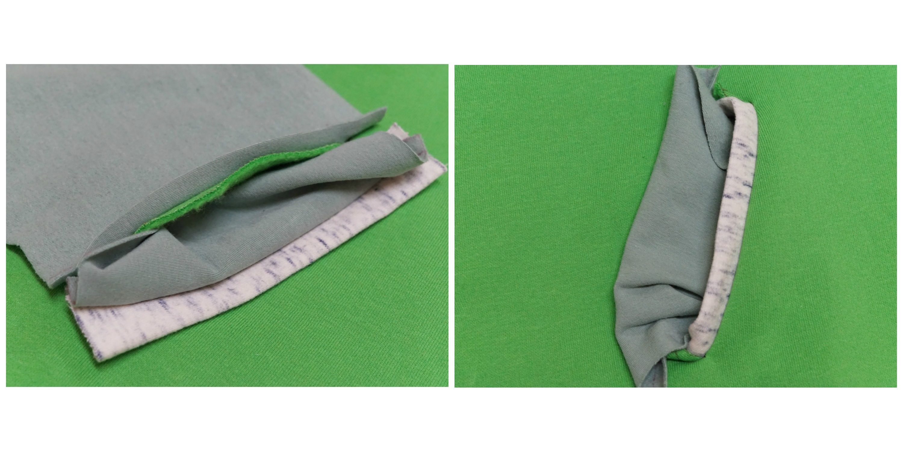 Do ściągacza dolnego przyszywamy dwa paski z materiału po jednym na każdym końcu ściągacza