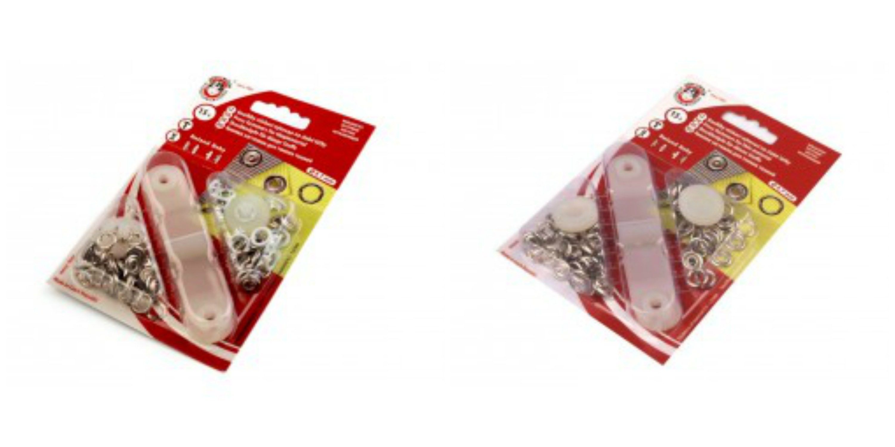 Do jego montażu służą dedykowane końcówki, które otrzymamy w każdym zakupionym zestawie oczek kaletniczych PRYM