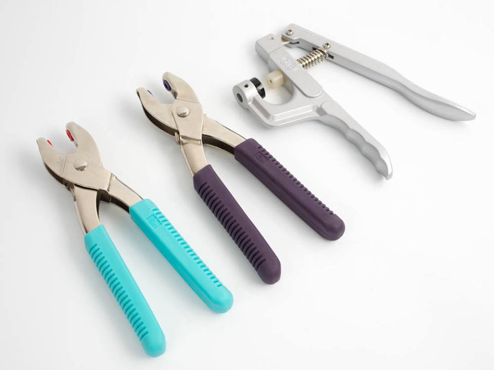 PRYM - to napownica o zdecydowanie większym spektrum możliwości. Możemy nią montować napy plastikowe, metalowe, oczka kaletnicze, springi, nity. Tutaj również mamy możliwość wyboru wielkości montowanych elementów (nap, oczek).