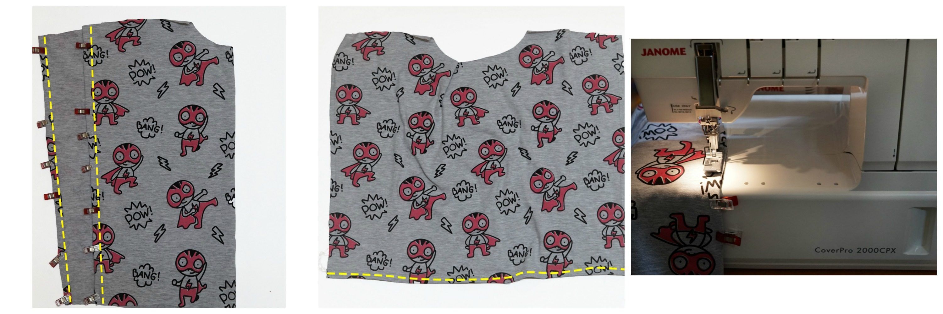 Teraz zszywamy ponczo na ramionach, ja zrobiłam to na overolcku: