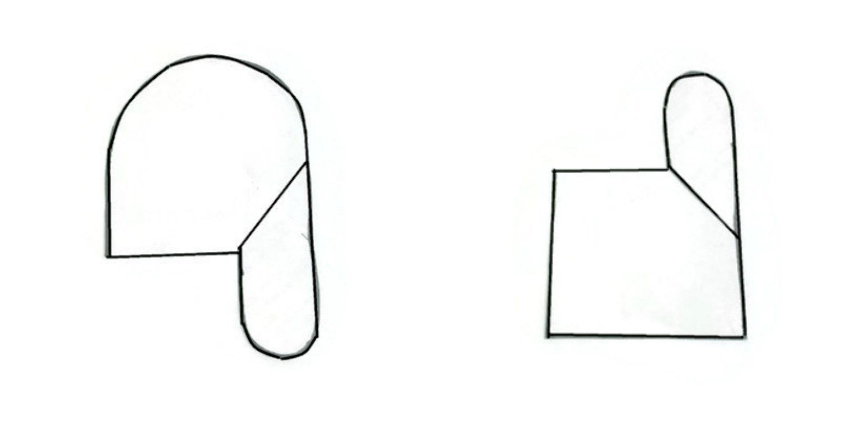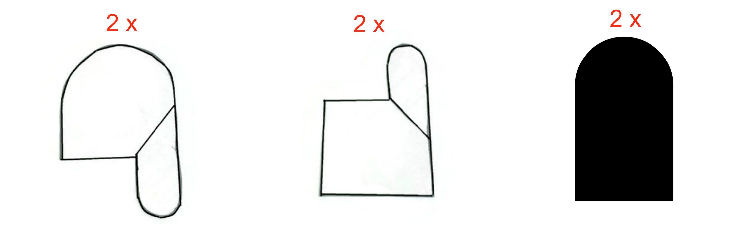 Obrysowujemy tez złączone górę i dół bez kciuka i wycinamy z dresówek poszczególne trzy części