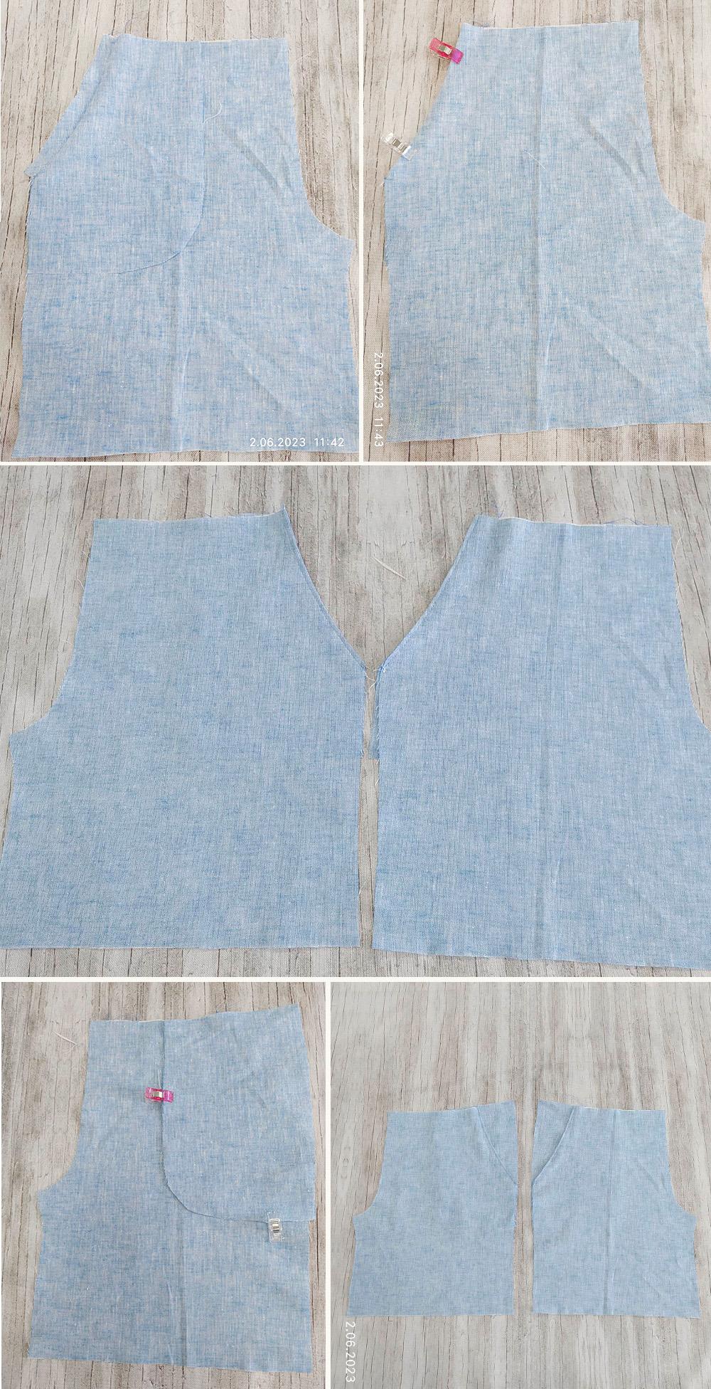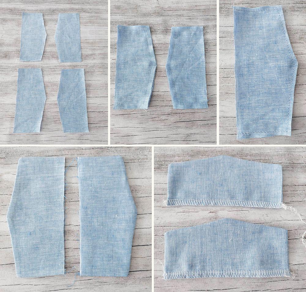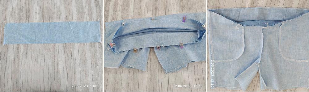 5.Po doszyciu kieszonek z obu stron połącz nogawki spodenek, najpierw podkroje, potem w kroku.