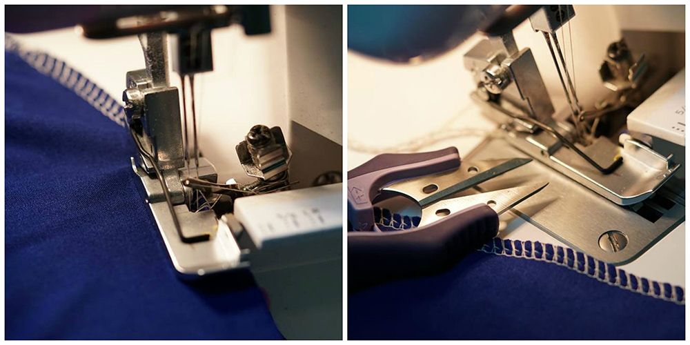 Zszywamy krótszy bo prostokąta overlockiem lub na maszynie wieloczynnościowej ściegiem prostym.