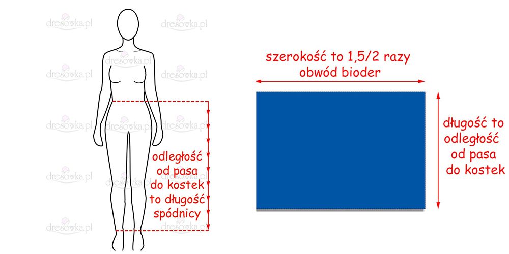 SZEROKOŚĆ SPÓDNICY - w zależności, czy chcemy mocniej czy mniej zmarszczoną spódnicę za szerokość przyjmujemy obwód bioder razy półtorej (jak u mnie) lub razy dwa (wtedy marszczenie jest bardziej widoczne.