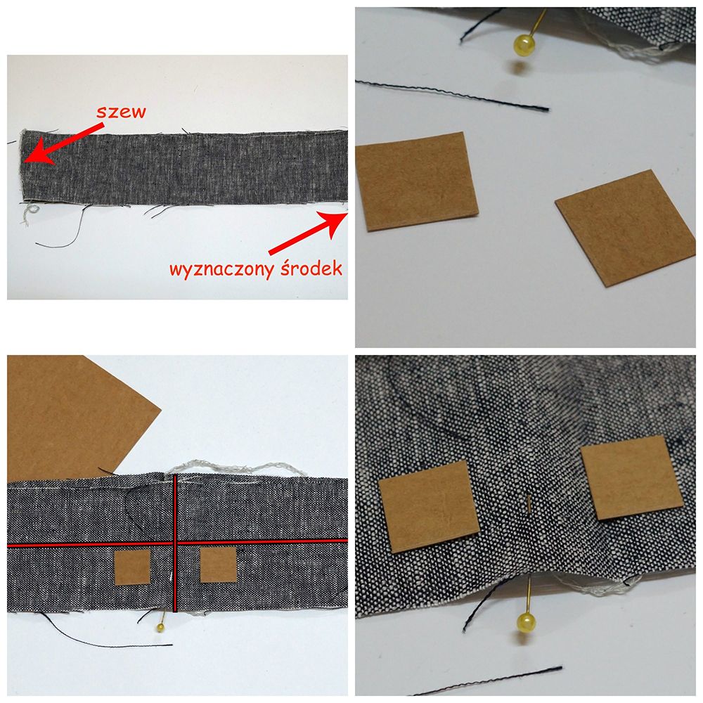 Wyznaczyłam sobie środek pasa pionowo (szew będzie idealnie z tyłu), wyznaczyłam też linię poziomą przebiegającą również przez środek (to będzie złożenie tunelu na gumkę).