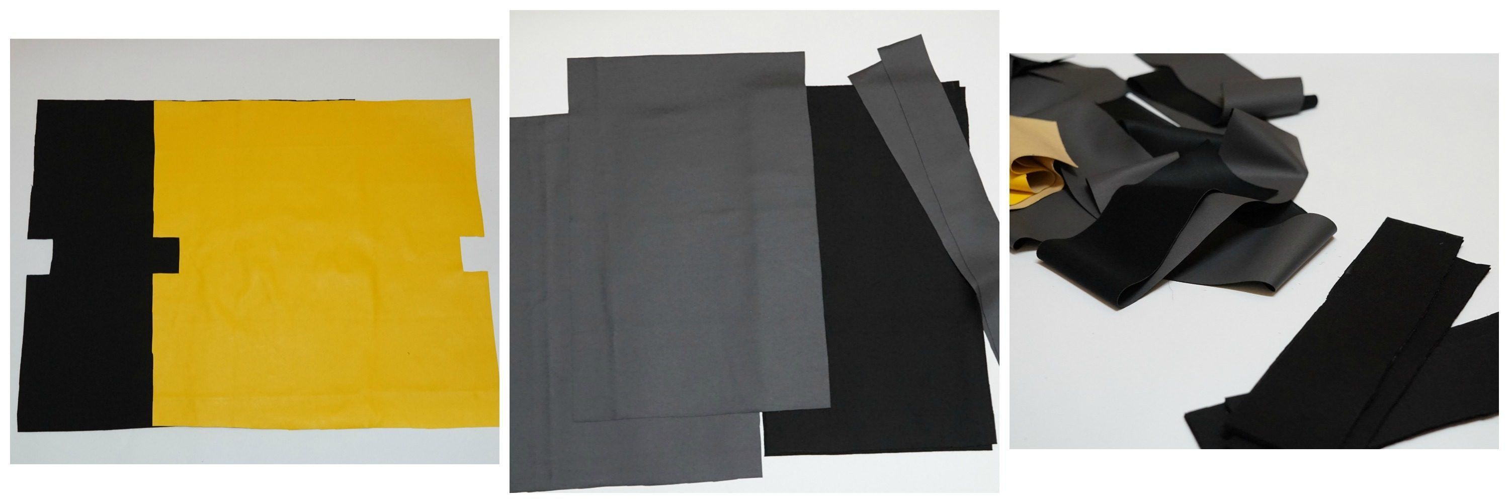 - panel górny 2 x ekoskóra i 2 x pianka ( krojąc panel z pianki kroimy go o 5 cm krótszy i te 5 cm kroimy z ekoskóry, potem doszywamy do pianki)