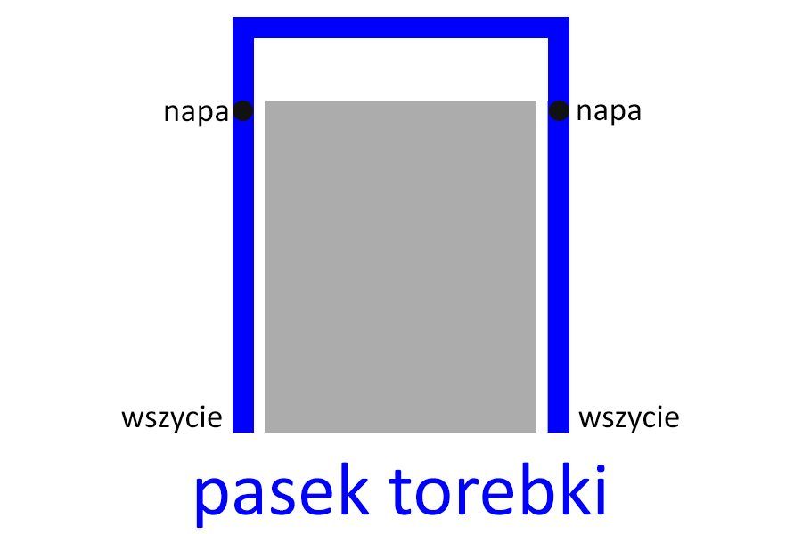 Pasek będzie wszyty w dolnych rogach torebki i na koniec przyczepiony napą (lub przyszyty u góry torebki).