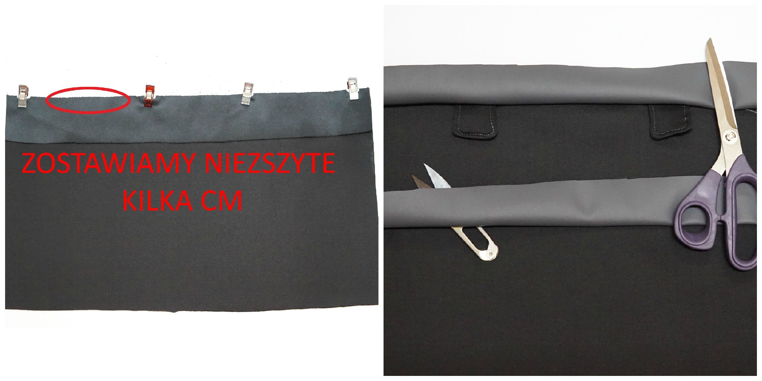Pierwszy etap to zszycie warstwy wierzchniej torby: