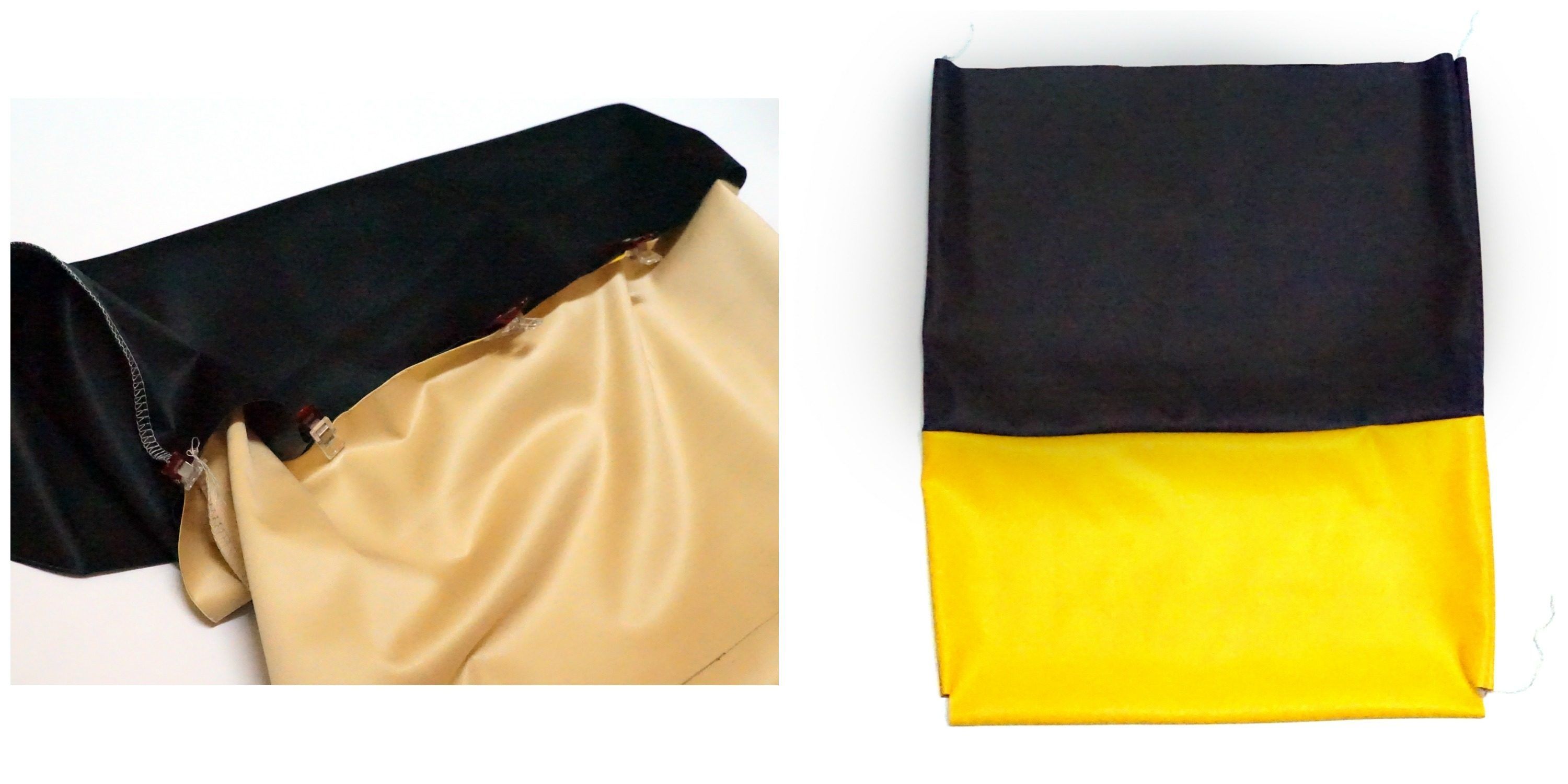 Drugi panel zszywamy tak samo jak pierwszy ( pomijamy już zaczepy), zostawiając otwór , przez który na samym końcu wyciągniemy gotową torbę*: