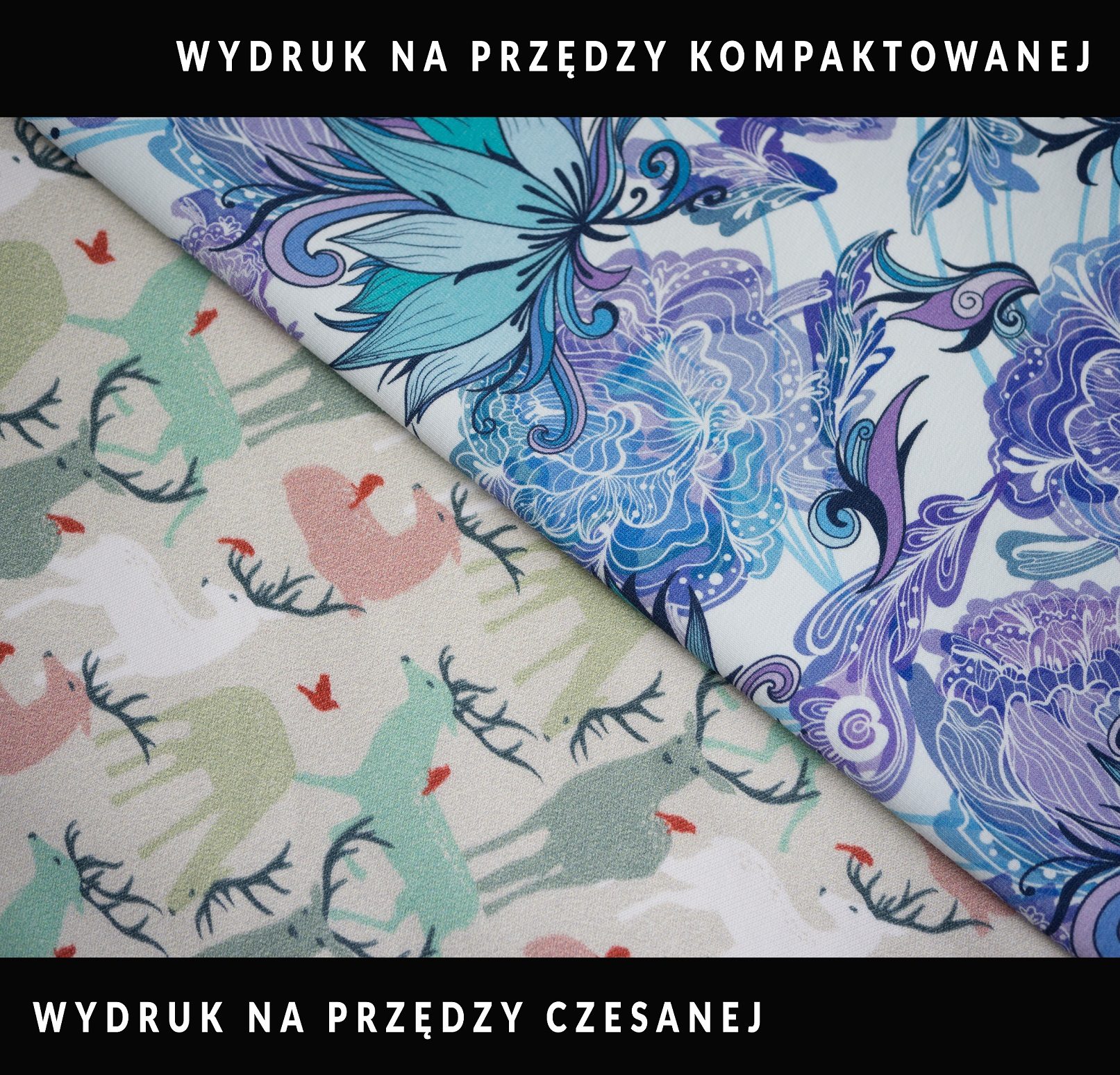 Tym samym w naszej ofercie posiadamy aktualnie dzianiny drukowane cyfrowo, które są równie grube co standardy rynkowe wykonane na przędzy czesanej, przy zachowaniu zdecydowanie najwyższej jakości wydruku.