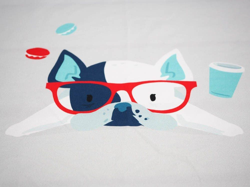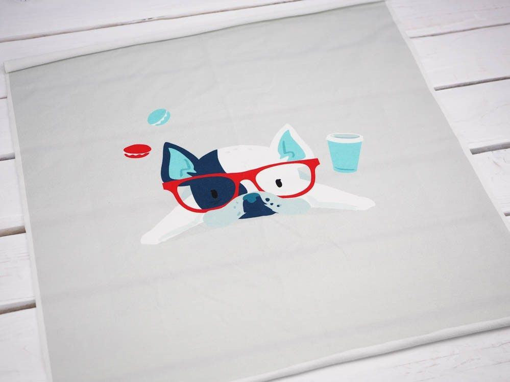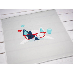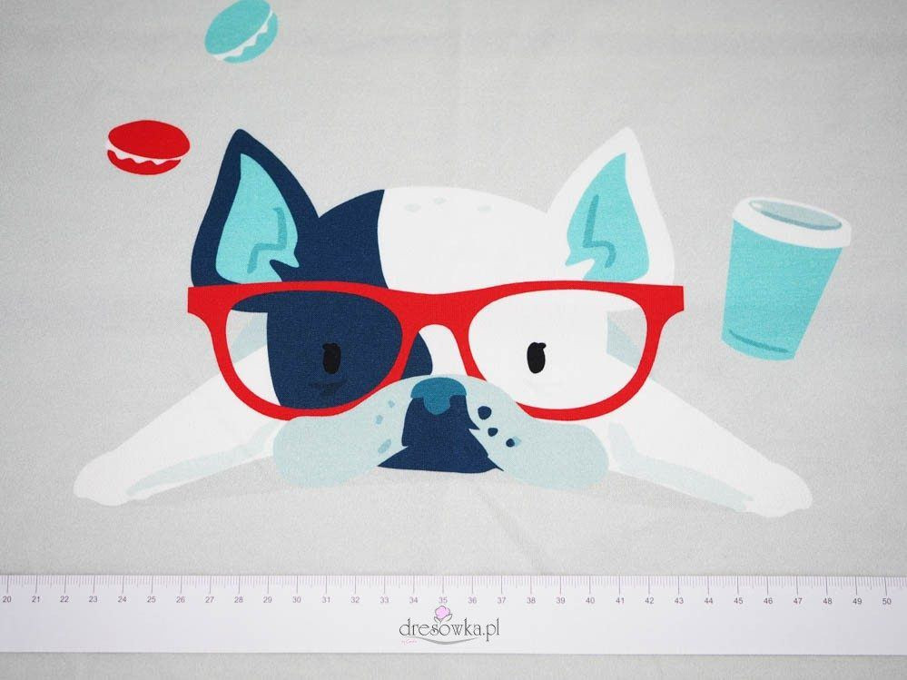 Dog with glasses (J'adore Paris) / aqua - panel single jersey TE210 Dresówka.pl 5900756031400 Odcienie szarego Single jersey / t-shirt