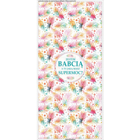 You can order the panel with the " JESTEM BABCIĄ, A TY JAKĄ MASZ SUPERMOC? / rainbow feathers " pattern on any material available in our selection.