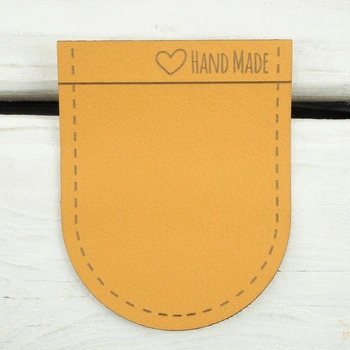 Große dekorative Brusttasche aus Kunstleder gerundet "Hand Made" - honiggelb