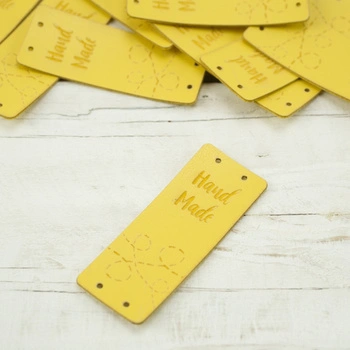 Falt-Label "Hand Made" - Heftnaht 2 x 5 cm - senf
