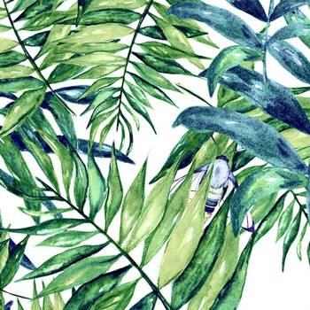 BLÄTTER UND INSEKTEN MS.6 (TROPISCHE NATUR) / weiß - Slub Weave
