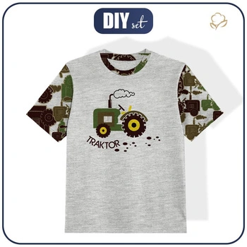 KINDER T-SHIRT- TRAKTOR GRÜN/ melange hellgrau- Single Jersey (116/122)