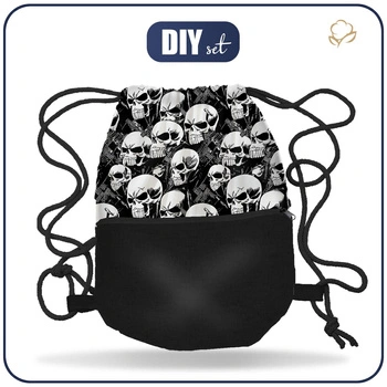 TURNBEUTEL MIT TASCHE - TOTENKÖPFE KONTUR / Kranz (DIA DE LOS MUERTOS) - Nähset