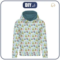 CLASSIC WOMEN’S HOODIE (POLA) - CHRISTMAS TREES AND PRESENTS (CHRISTMAS SEASON) - looped knit fabric