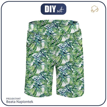 KID`S SHORTS (RIO) - MINI LEAVES AND INSECTS PAT. 6 (TROPICAL NATURE) / white - looped knit fabric (134/140)