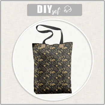 SHOPPER BAG - LEAVES pat. 11 (gold) / black - sewing set