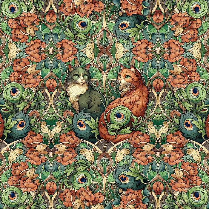 Panel z wzorem " ART NOUVEAU CATS & FLOWERS WZ. 3" możesz zamówić na dowolnym materiale dostępnym w naszym wybieraku.