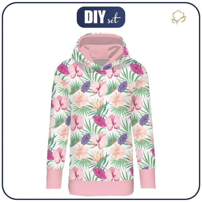BLUZA DAMSKA (MEGI) - DŁUGA Z KAPTUREM - EGZOTYCZNE ROŚLINY - dzianina pętelkowa L