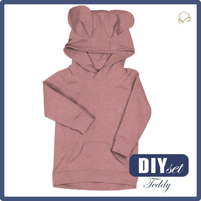 BLUZA DZIECIĘCA TEDDY (PARIS) - MELANŻ RÓŻ KWARCOWY - zestaw do uszycia (110/116)