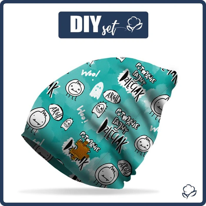 Czapka "Smerfetka" - POTWORNIE FAJNY DZIECIAK / AQUA (SZKOLNE RYSUNKI) / Rozmiar do wyboru