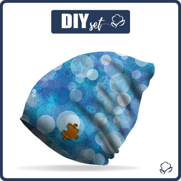 W zestawie znajdują się materiały niezbędne do uszycia czapki.