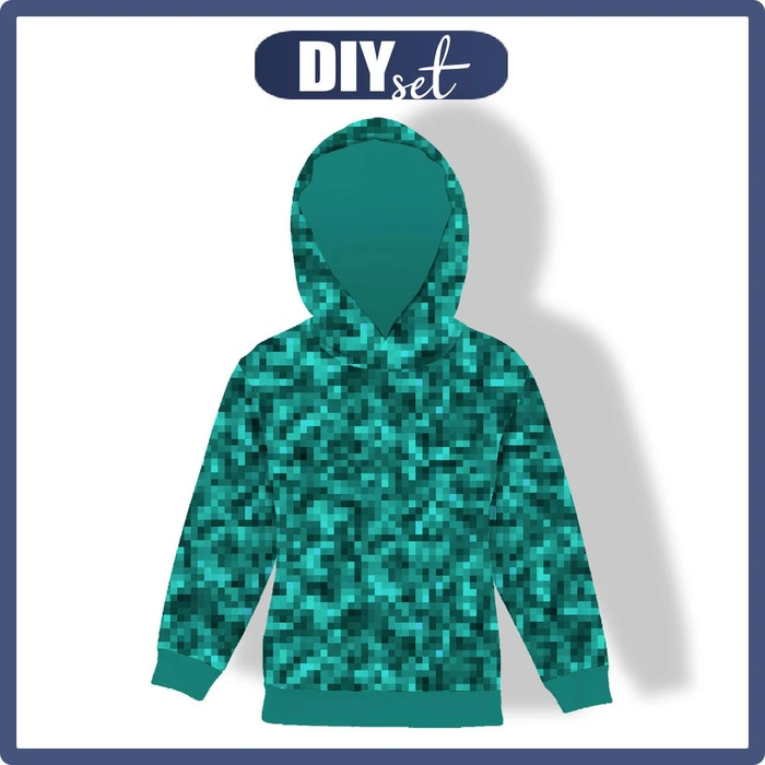 DZIECIĘCA BLUZA Z KAPTUREM (ALEX) - PIKSELE WZ. 2 / morski - dzianina pętelkowa (122/128)