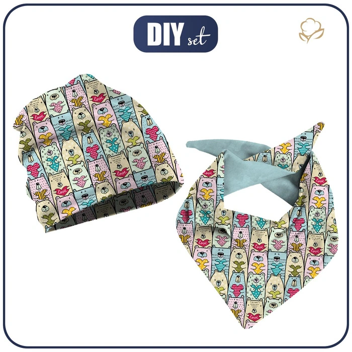 DZIECIĘCA CZAPKA I CHUSTA (CLASSIC) - MISIE Z SERCAMI 44-47