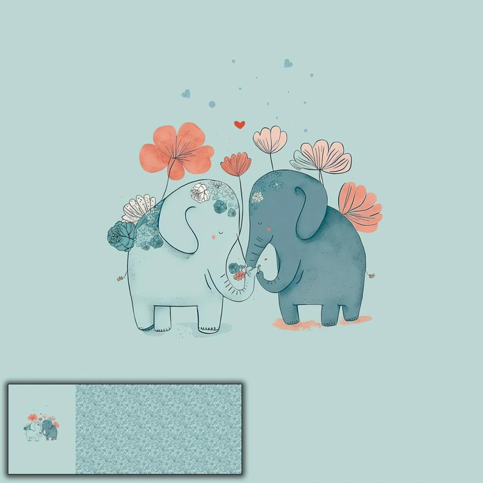 ELEPHANTS IN LOVE - panel panoramiczny softshell (60cm x 155cm)
