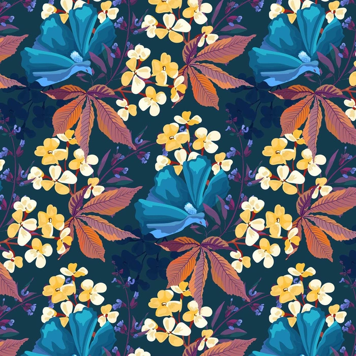 FLORAL AUTUMN wz. 2 - dzianina drapana z elastanem ITY