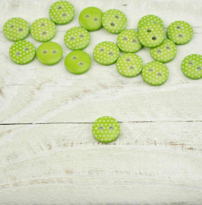 Guzik plastikowy w kropki mały - limonkowy
