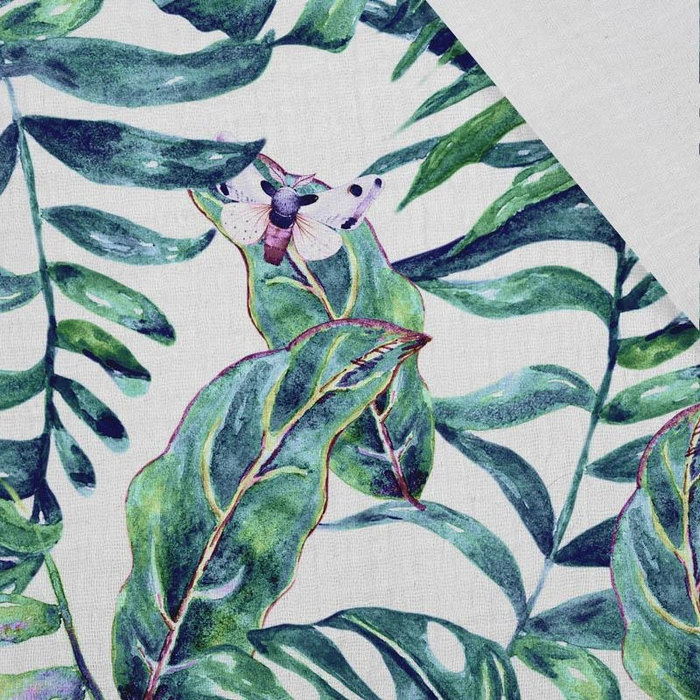 LIŚCIE I OWADY WZ. 3 (TROPIKALNA NATURA) / biały - Muślin bawełniany