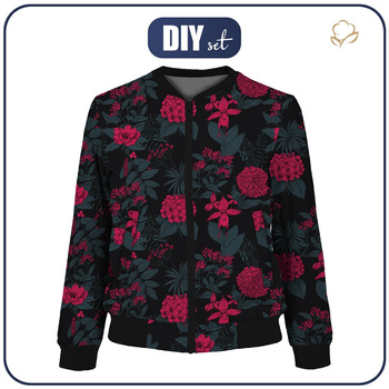 BOMBERKA DAMSKA (KAMA) - AKWARELOWE KWIATY wz. 2 / czarny - zestaw do uszycia