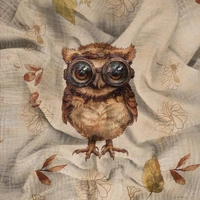OWL STEAMPUNK FOREST WZ. 1 - PANEL PANORAMICZNY (60cm x 140cm) muślin bawełniany