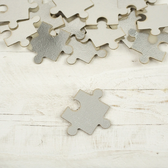 Naszywka z kreszowanej eko skóry w kształcie puzzla.