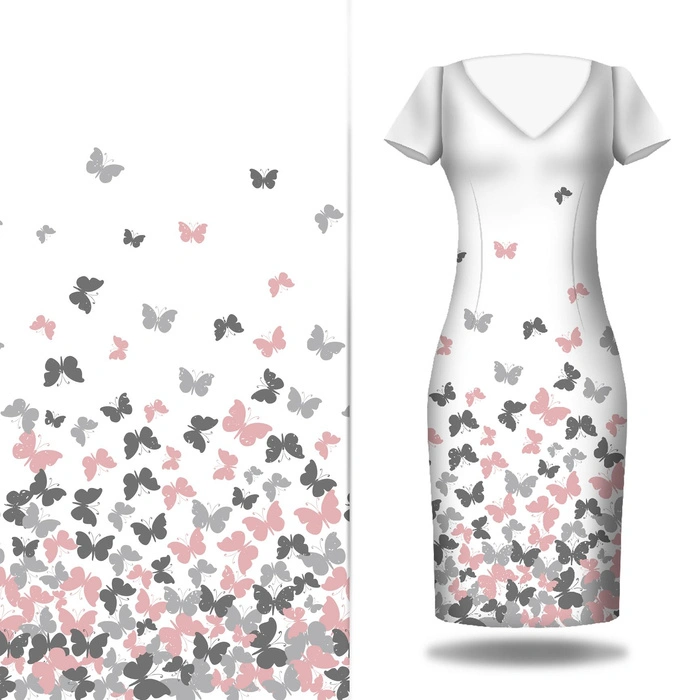 MOTYLKI RÓŻ - panel sukienkowy single jersey