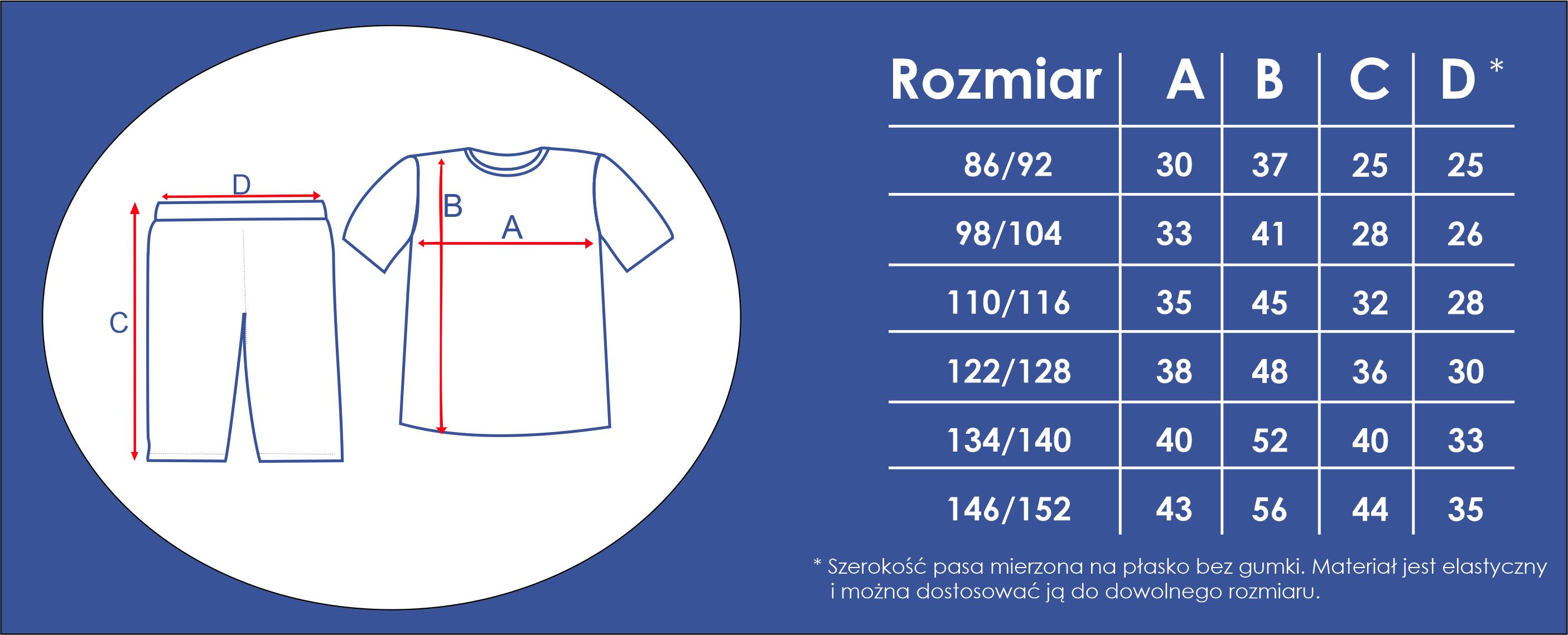 - wykrój piżamy dziecięcej nadrukowany na dzianinie bambusowej single jersey (wystarczy wyciąć i zszyć)