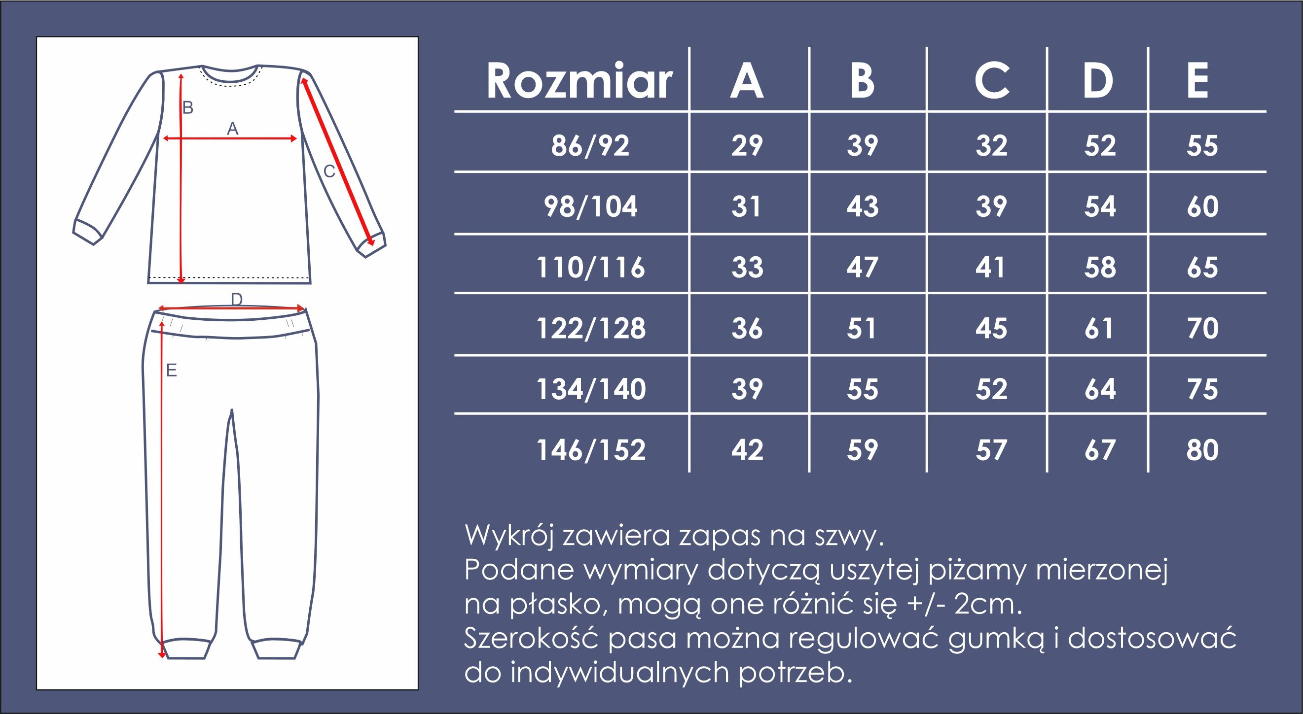 - Nadrukowane na elastycznej dzianinie elementy wykroju piżamy dziecięcej (wystarczy wyciąć i zszyć)