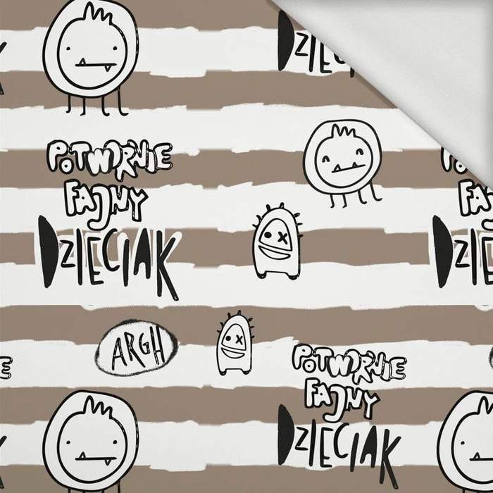 POTWORNIE FAJNY DZIECIAK / BEŻOWE PASY (SZKOLNE RYSUNKI) - dresówka pętelkowa
