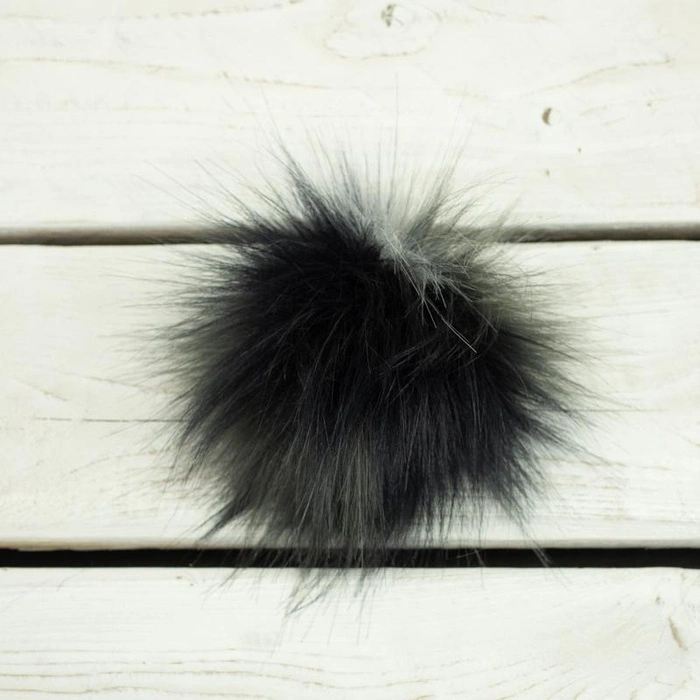 Pomponik futerkowy eko 12cm - czarno-szaro-biały