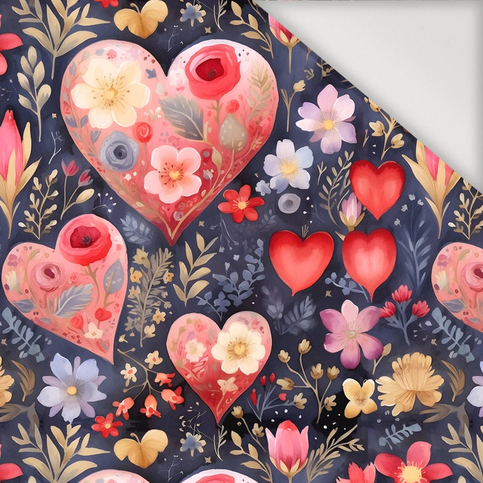Tkanina jest lekko błyszcząca. Z wierzchu gładka, od spodu wykończona delikatnym gumowaniem. Dzięki dodatkowemu wykończeniu materiał nie chłonie wody, wilgoci, nie ulega łatwemu zabrudzeniu.