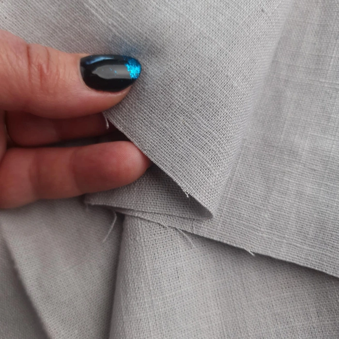 Tkanina wykonana w 80% z włókien ramii (pokrzywa chińska) i 20% bawełny to wyjątkowe połączenie naturalności, komfortu i trwałości. Struktura materiału przypomina klasyczny splot lniany – widoczny, subtelny i matowy, co nadaje tkaninie szlachetny, naturalny wygląd.